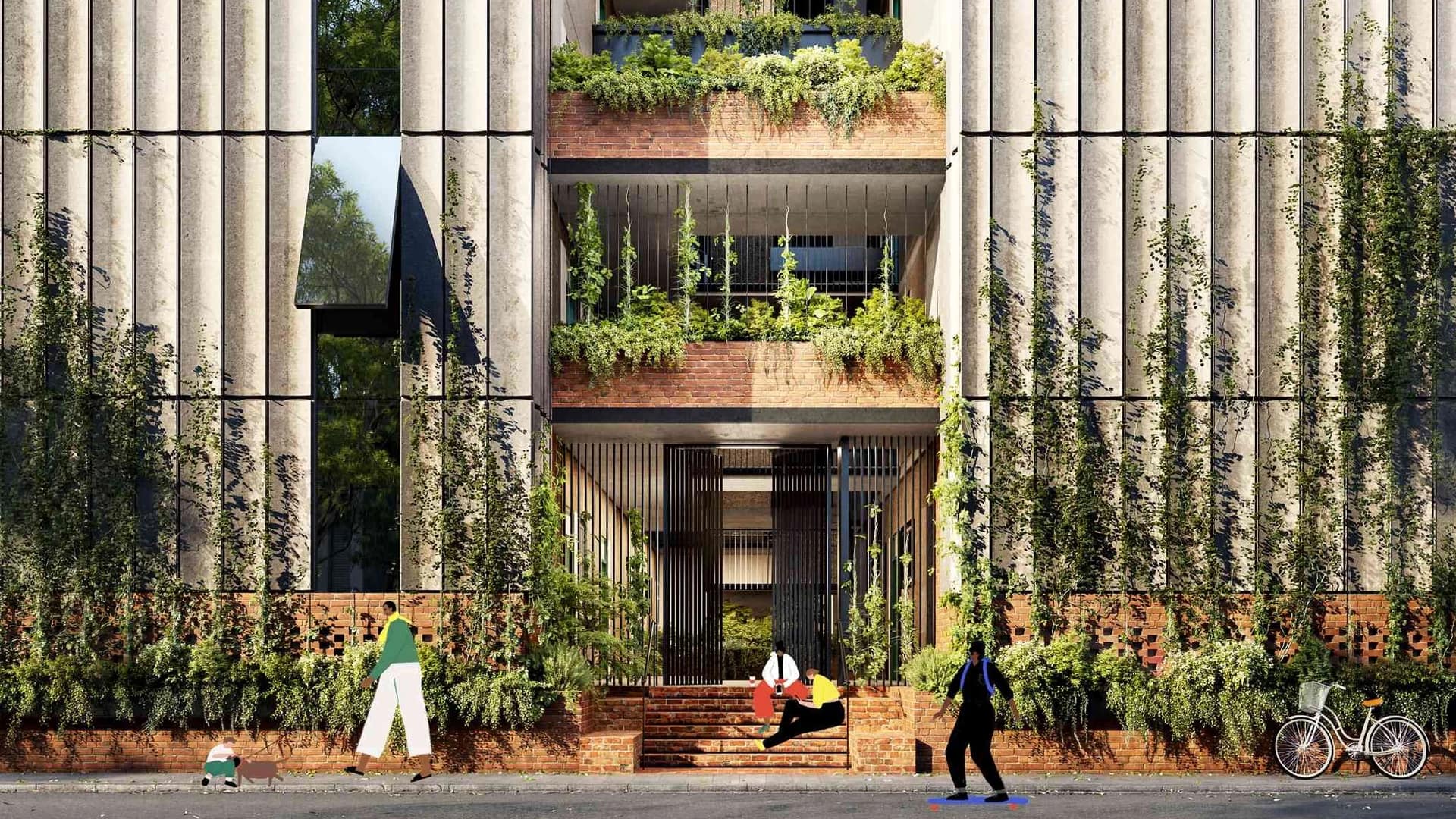 Fostering a sense of cohesion among residents, encased in textured precast concrete façades, these structures pay tribute to the neighbourhoods industrial heritage, showcasing detailed brickwork, vertical steel elements, and tactile materials that reflect the suburb’s rich historical background.