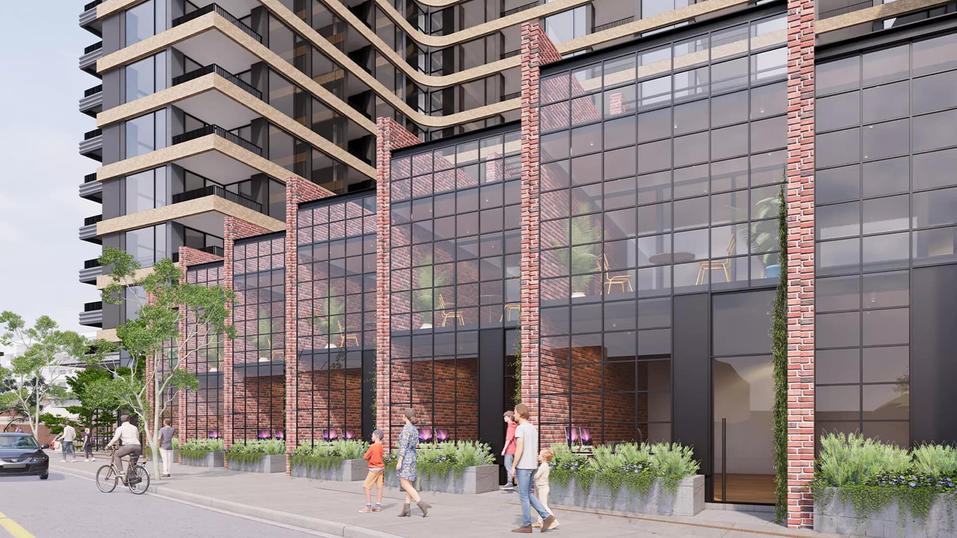 In addition to residential spaces, the development features six retail shops, a three-level underground parking facility, and exceptional communal amenities such as a landscaped courtyard, a residents' lounge, and an inviting rooftop terrace.