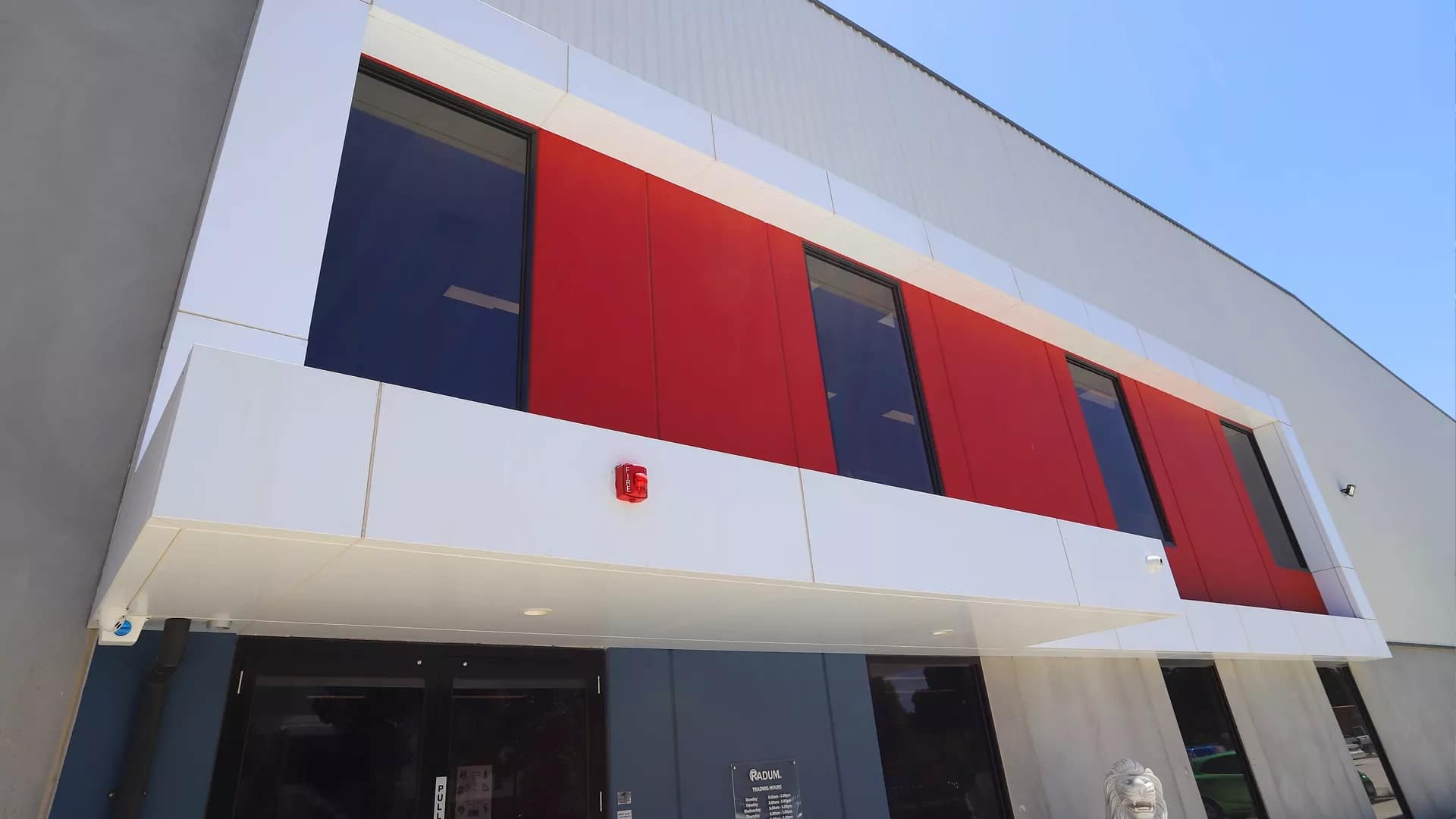 A purpose-built facility featuring a high-spec industrial building, foyer and showroom, first-floor office with integrated amenities, dispatch office, heavy-duty hardstand, marked car parking, and landscaped surrounds.